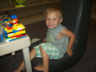 Today I took the boys to storytime again. Kylan really enjoyed it today. It involved musical instruments. Maybe a musician in the works? Afterwards we went to Stacy's house to swim with her & her boys, and Tiffany & baby Camilla. We had a blast. I did get a little burned, sad huh? Jace loved swimming with his vest and borrowed arm floaties from Stac. As long as you didn't touch him he would swim all over that pool. Of course I was right behind him. Isn't summer the BEST?